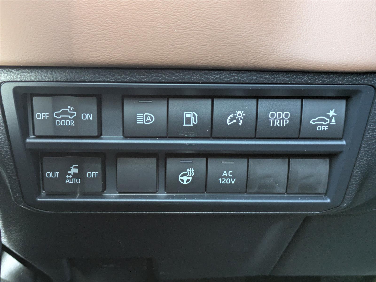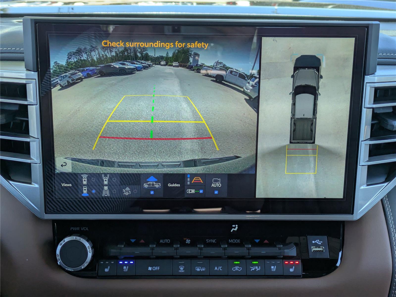 - The vehicle is equipped with a camera that displays an image of the area behind the vehicle on an interior display.